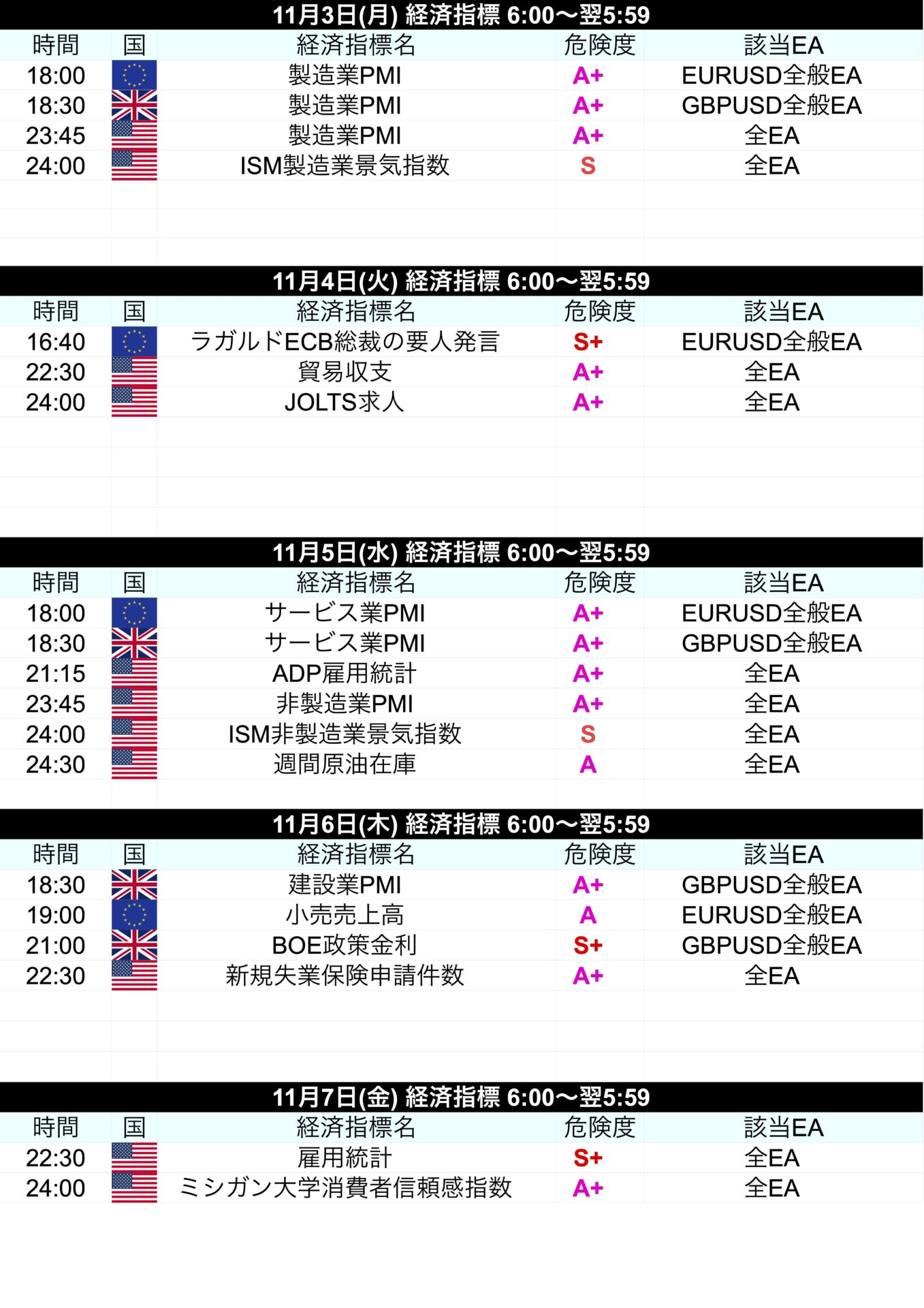 | 11月3日(月) 経済指標 6:00〜翌5:59 | ||||