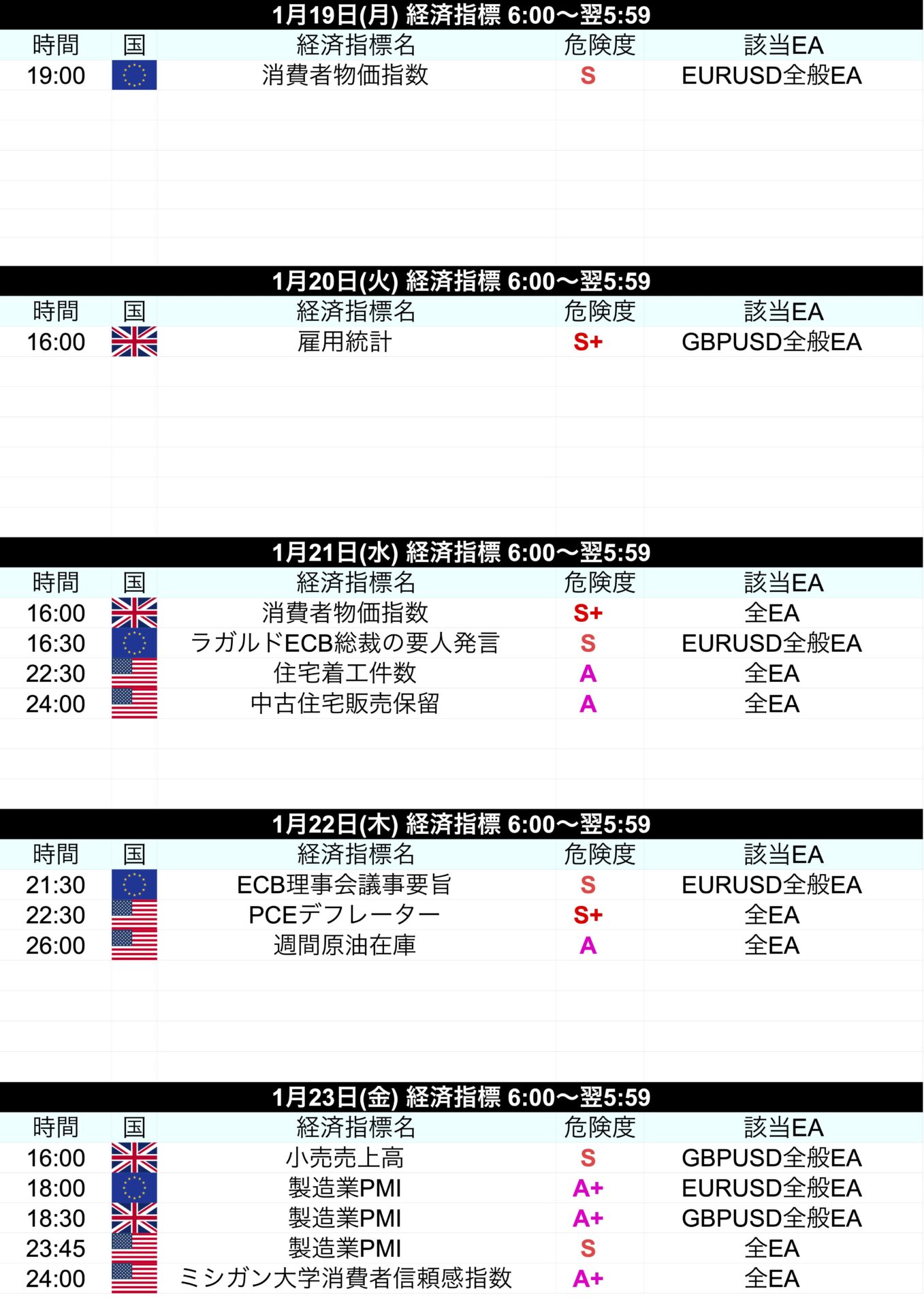 | 16:00 | 雇用統計 | S+ | GBPUSD全般EA | |