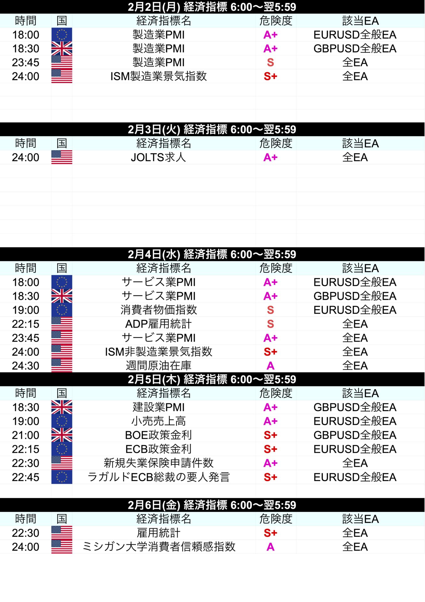 時間 経済指標名 危険度 該当EA