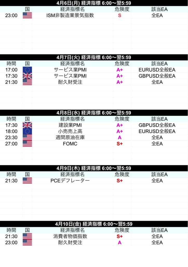 米国重要指標が多い週となりますので、ゴールドを運用するEA稼働スケジュールは特に注意の上ご検討ください。