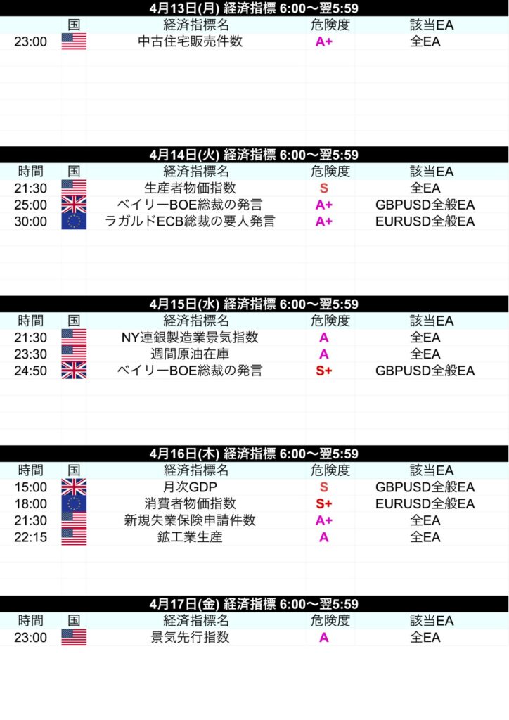 | 4月14日(火) 経済指標 6:00〜翌5:59 | ||||