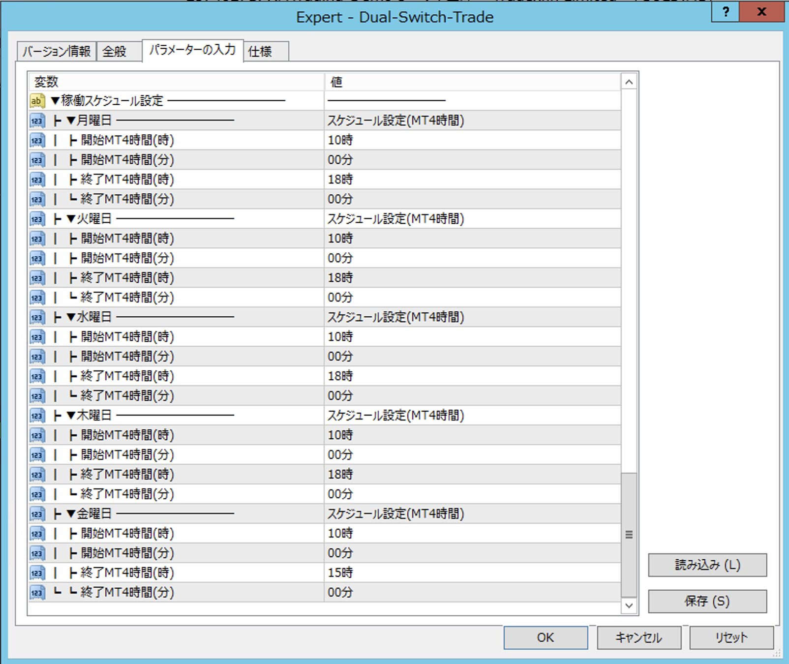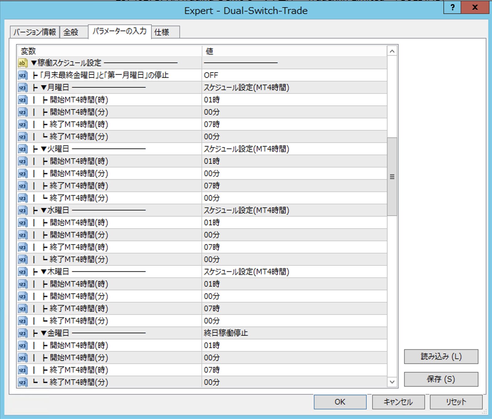 ・スケジュール設定(MT4時間)