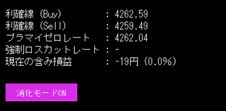 消化モードをONにすることにより、現在のポジションが決済されたら自動的にEAを停止してくれます。