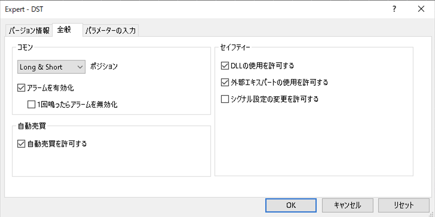 【3】EA設定方法(全般タブ)