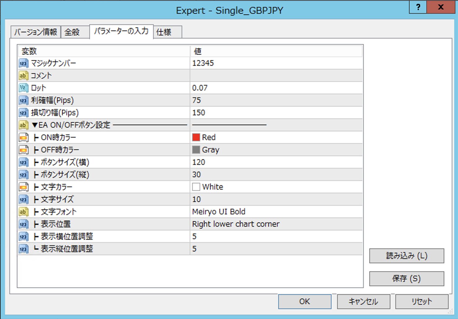 ※15分足以外で使用するとEAが正しく動作しないのでご注意ください