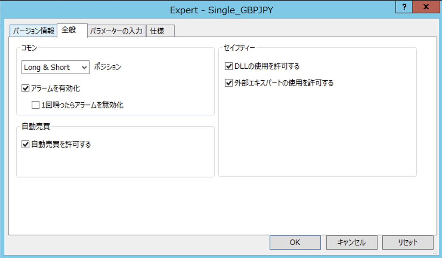 「DLLの使用を許可する」にチェックを入れないとEAが設置できません。